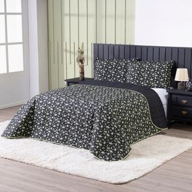 Imagine um cobre-leito feito de um suave e respirável tecido de algodão, perfeito para trazer conforto e elegância ao seu quarto. Com um lindo matelado que adiciona textura e sofisticação, ele apresenta um design dupla face: de um lado, um padrão estampado, trazendo frescor e delicadeza, do outro, uma cor sólida e clássica que combina com qualquer decoração.